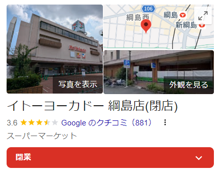 「イトーヨーカドー綱島店、今までありがとう。」